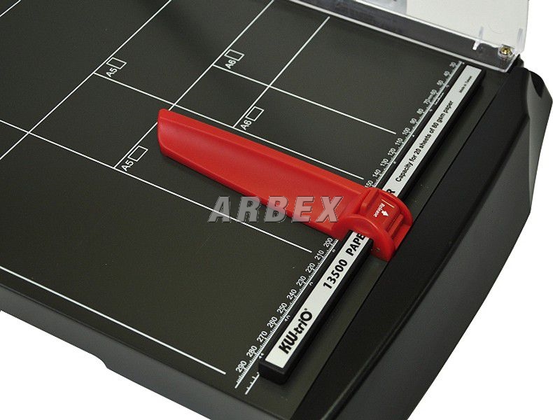 Délka řezu je 343 mm a maximální kapacita 20 listů (70g/m).