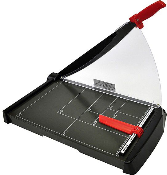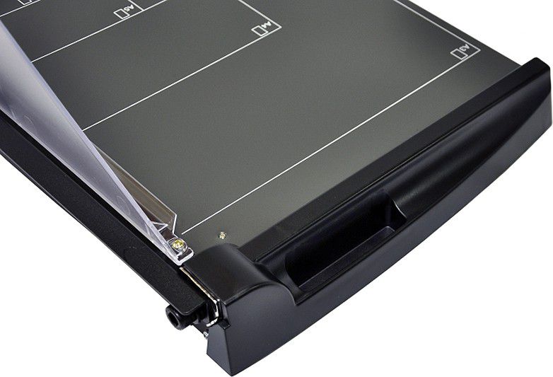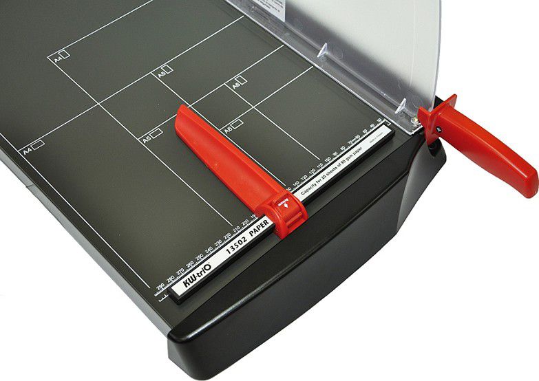 Výkonná páková řezačka A3 s kovovým stolem a plastovým ochranným krytem. Na stole je lišta s měřítkem, zadním dorazem a jsou na něm vyznačeny běžné DIN formáty. Délka řezu je 449 mm a maximální kapacita 20 listů (70g/m). Vhodná pro kanceláře a na úpravu fotek z dovolené.