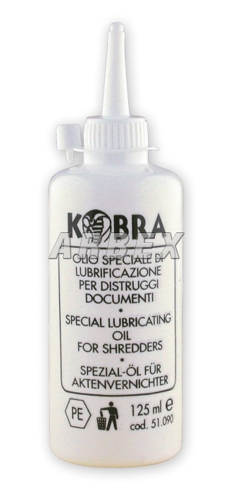 Olej pro snadnější chod řezných válců skartovacích strojů Kobra.Zlepšují jejich životnost a bezporuchovost. Při použití nanesete olej na list papíru a seskartujete.