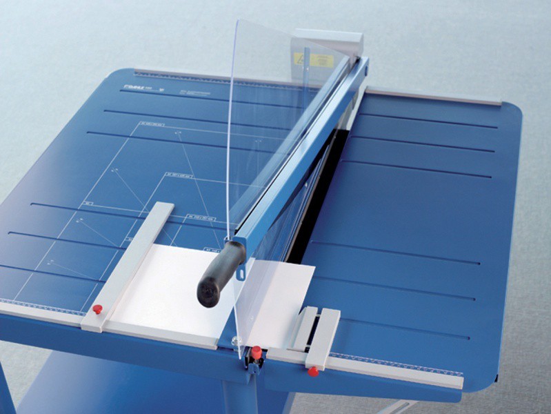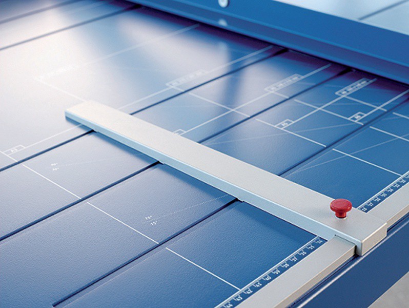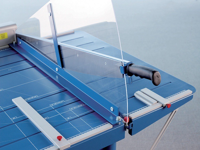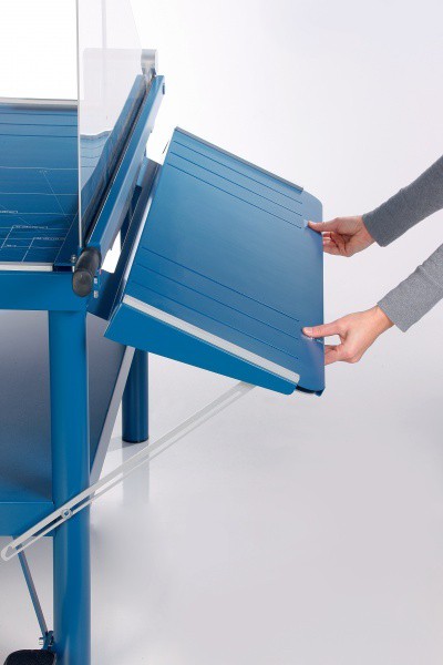 Pro velkoformátové řezací práce splňuje tato bezpečnostní řezačka všechny předpoklady. Nožní přítlak usnadňuje rychlé a bezproblémové seřízení a přesné zpracování velkoformátových předloh, výkresů či montážních kartonů.