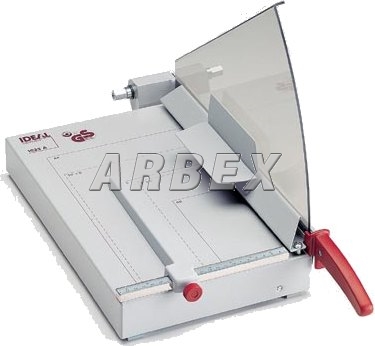 Řezačka s masivní celokovovou konstrukcí, ručním přítlakem, nožem Solingen a krytem nože z transparentního nerozbitného materiálu lexan.