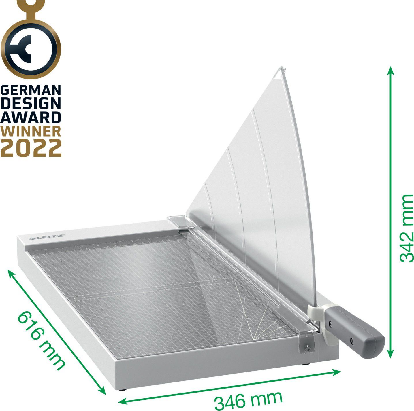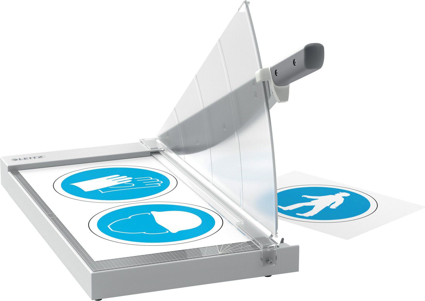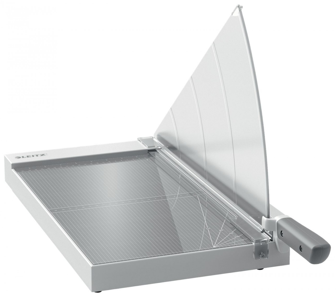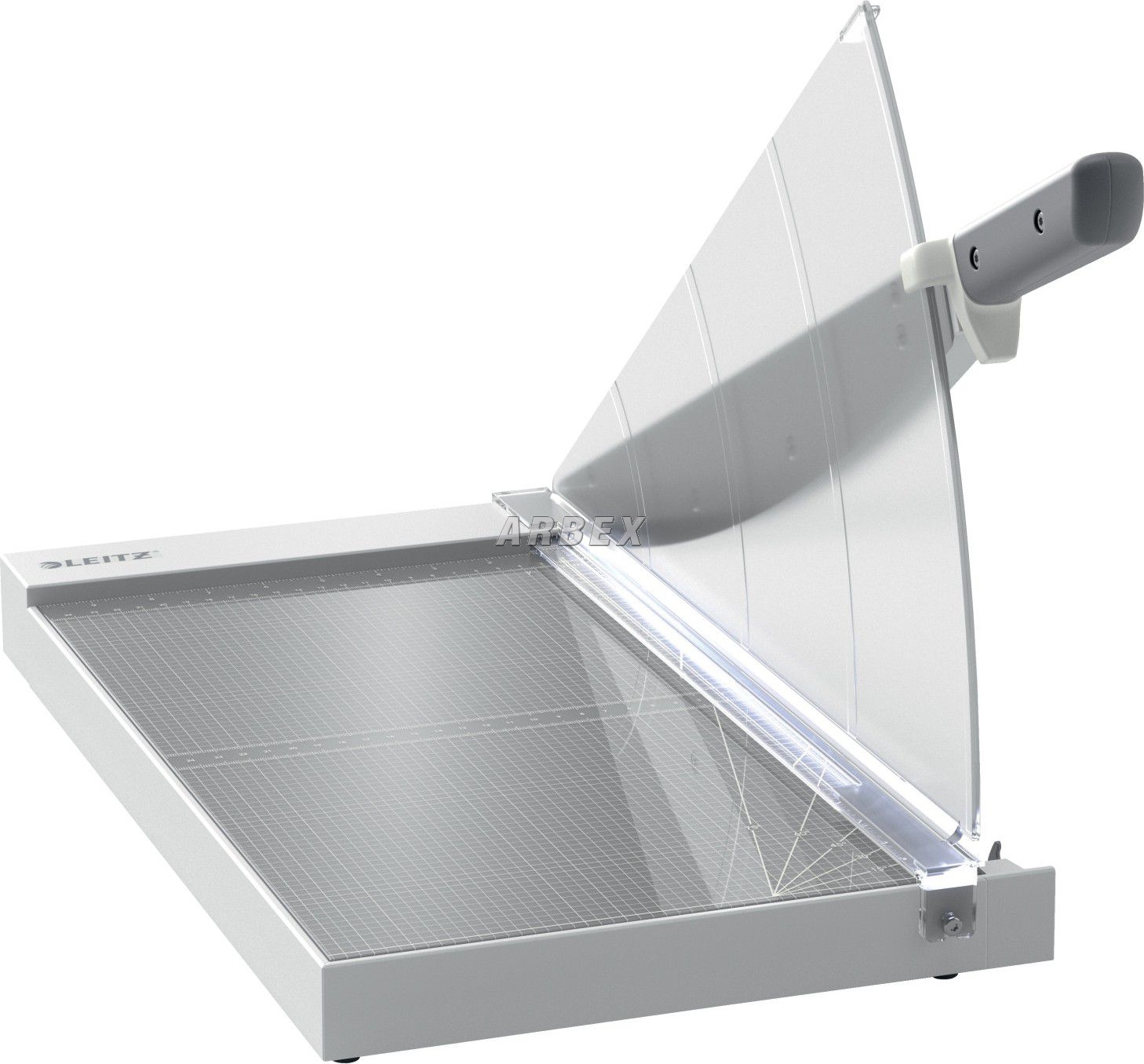 Přesná kancelářská řezačka papíru A3 Leitz je ideální pro běžné kancelářské použití k řezání papíru, štítků, fólií, fotografií, laminátů, karet a lepenky. Tato výkonná a robustní řezačka kancelářského papíru bez námahy a s rychlostí a přesností rozřeže až 15 listů papíru formátu A3 (80 g/m2). Je vybavena jedinečnou technologií světla EdgeGlow, které osvětluje ostří čepele pro lepší viditelnost při řezání a maximální přesnost. Průhledná ruční svorka na papír pevně zajišťuje jeho přesnou polohu, ergonomická rukojeť umožňuje pohodlné a snadné řezání. Přesné, snadno použitelné vodítko metrického zarovnání nebo psaní a vymazání vlastních vodicích čar Bezpečnostní kryt čepele poskytuje celkovou ochranu a bezpečnostní západka zablokuje čepel, když se nepoužívá. Díky vysoce kvalitnímu noži z nerezové oceli, robustní pracovní ploše a prodloužené pětileté záruce máte jistotu, že tato řezačka papíru A3 bude přesně řezat po mnoho let.