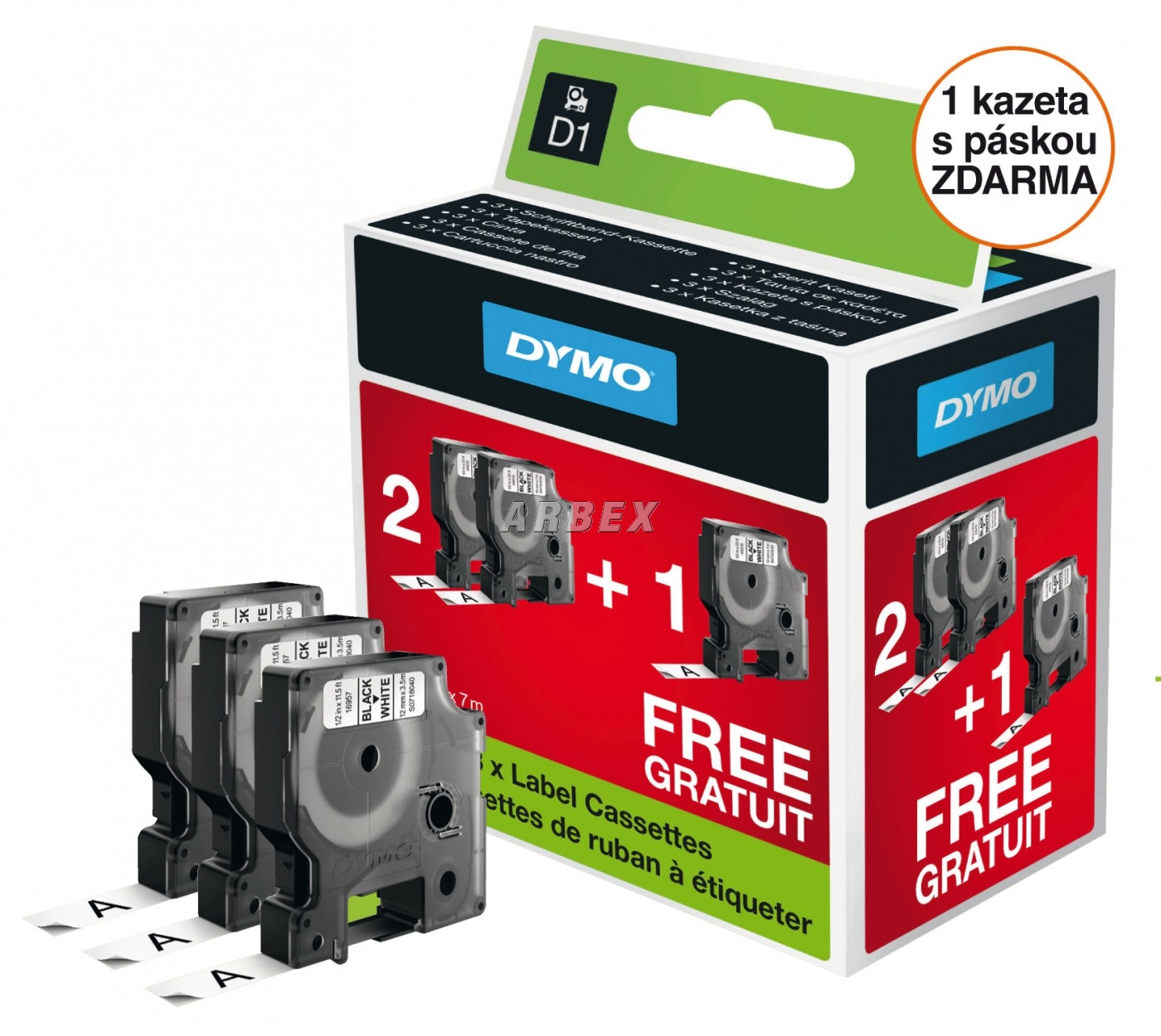 Páska D1 - 12 mm x 7 m, černá , 2+1 zdarma