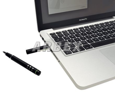 USB přijímač se ukládá dovnitř konce ukazovátka