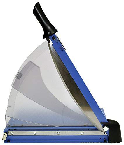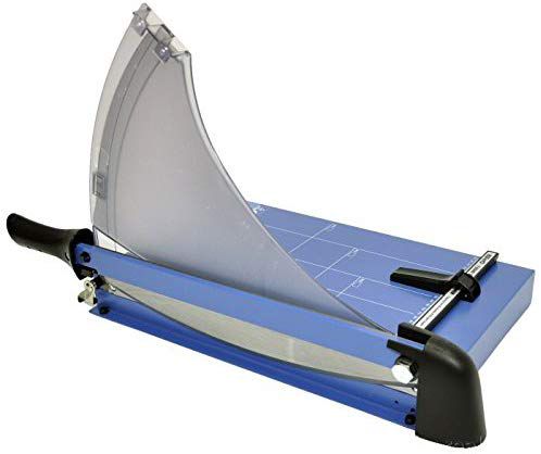 Výkonná páková řezačka s kovovým stolem a plastovým ochranným krytem.