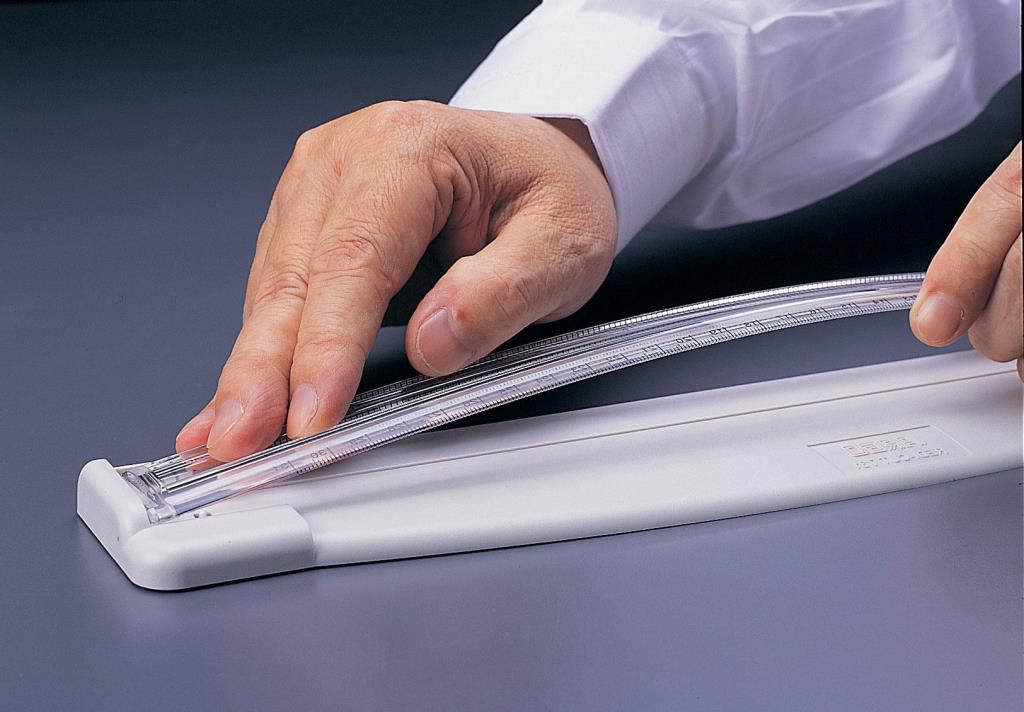 Jednoduché řezací pravítko pro domácnosti a školy.