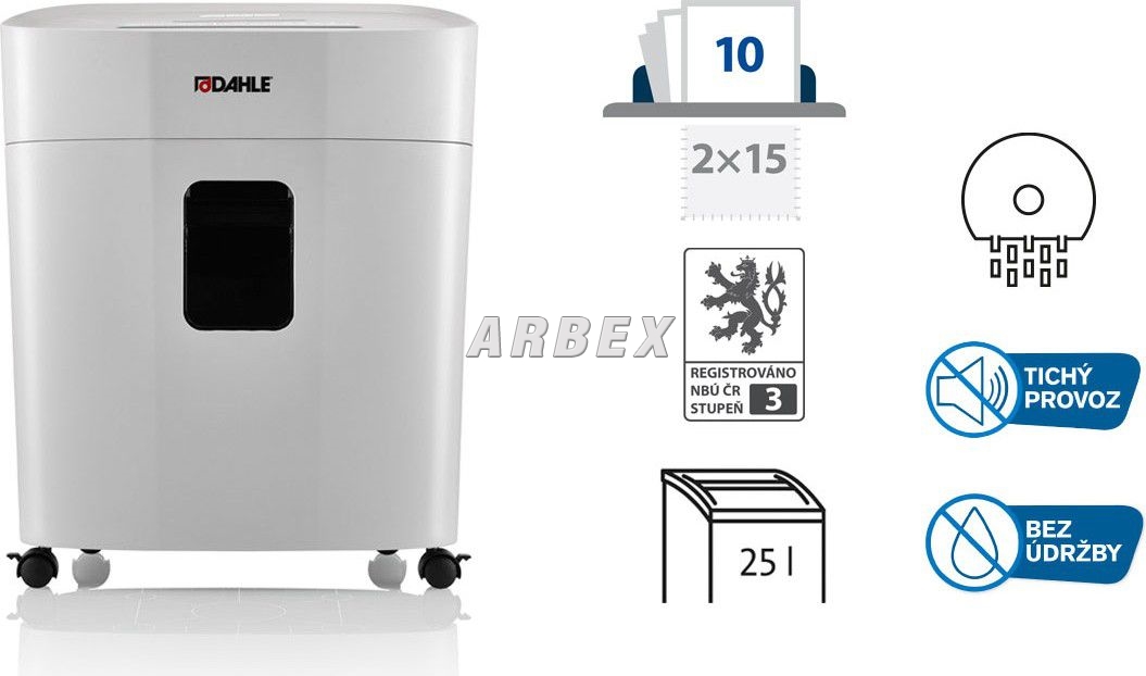 Extra výkonný a tichý skartovač atraktivního designu pro menší pracovní skupinu. Ideální pro skartaci dokumentů s citlivými informacemi – vhodné pro účtárny a personální oddělení. Skartuje papír včetně drátků ze sešívaček. Likvidace platebních karet a CD/DVD. Energeticky úsporný pohotovostní režim (po 10 min. nečinnosti). Bez nutnosti mazání a údržby, samočistící řezné válce. Indikace přetížení, přehřátí a plného koše.