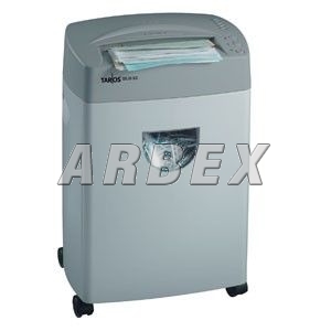 Řezací mechanismus zpracuje náhodně vložené sponky ze sešívačky, kreditní karty, příležitostně i CD.