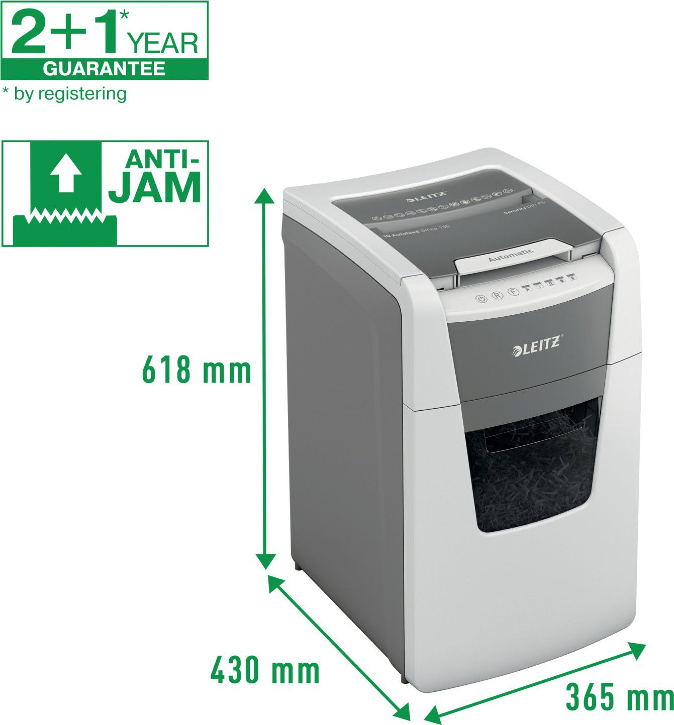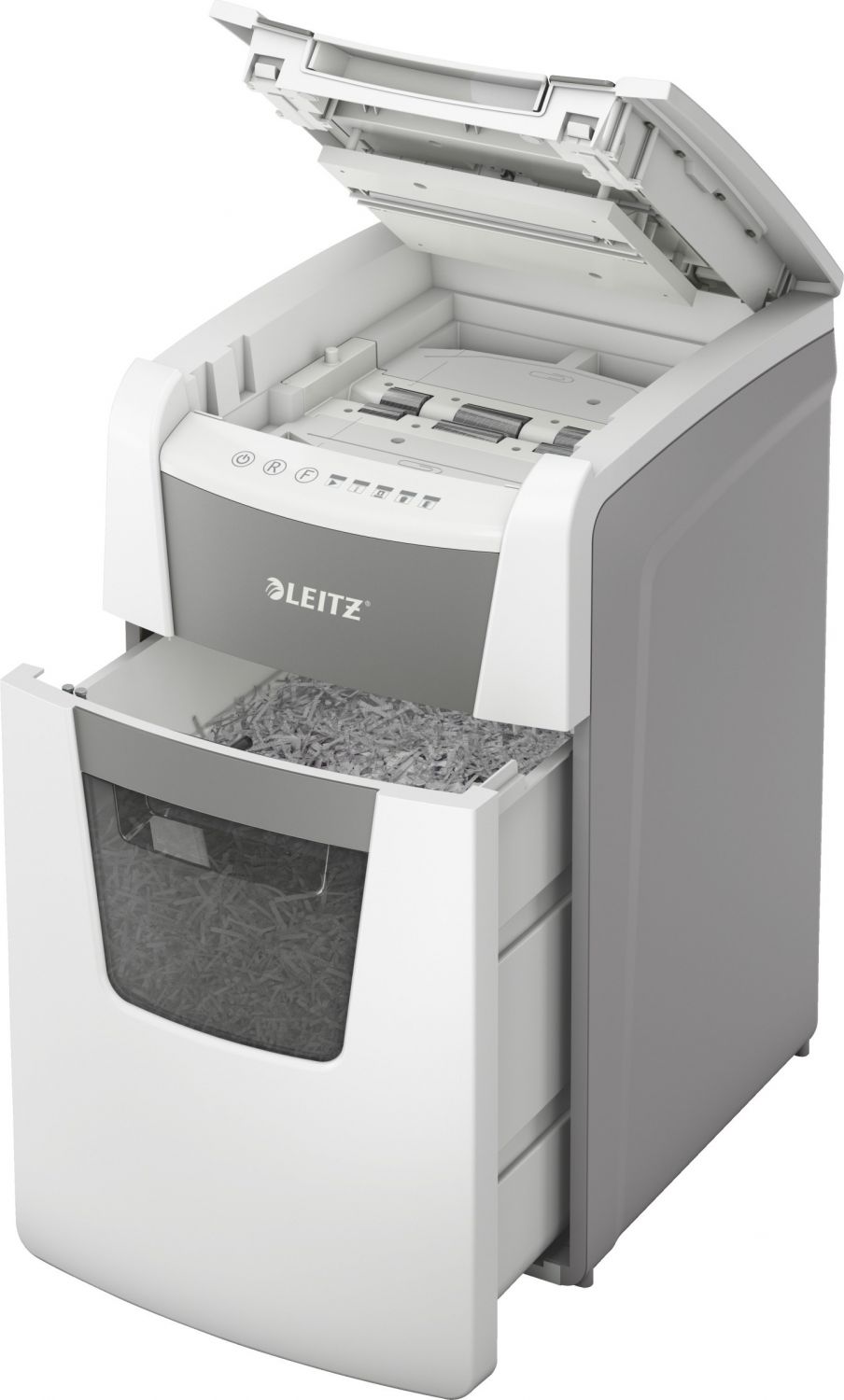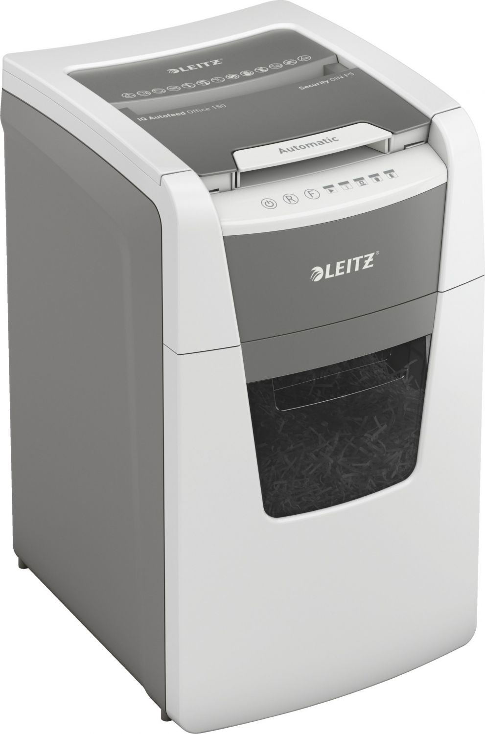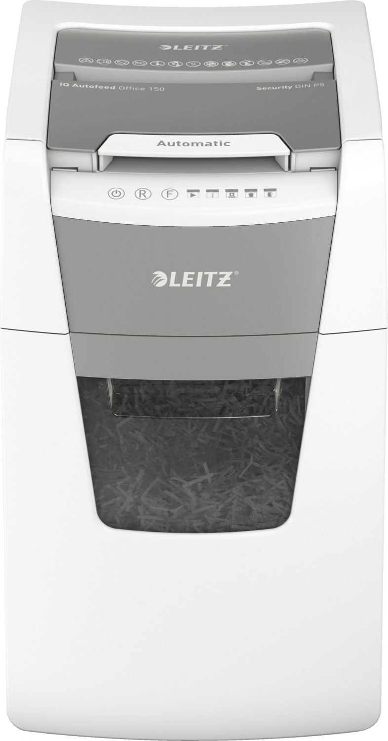 Plně automatická skartovačka papíru od firmy Leitz s jedinečnou čistou vyprazdňovací funkcí. Je tak inteligentní, že tiše pracuje sama, jen vložte stoh papíru (včetně sponek a svorek), zavřete víko a jděte si po své práci. Ideální pro použití pro kanceláře. Vysoká bezpečnost a vynikající výkon s touto skartovačkou s automatickým podáváním, s funkcí proti zaseknutí papíru, tichou a s dlouhým provozem (30 minut). Automaticky skartuje 150 listů A4 s úrovní zabezpečení P5 (2x15 mm) s mikro řezem do velkého koše s objemem 44 l. Jednoduché ovládání pomocí dotekových prvků.