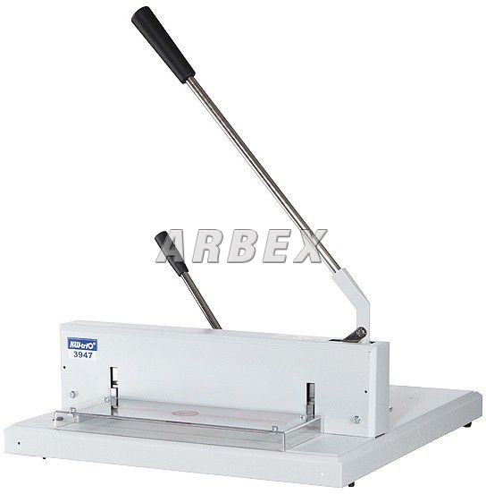 Bezpečí uživatele zajisťuje přední plexi kryt a zpřevodovaná dlouhá páka ulehčuje řezání většího počtu listů.