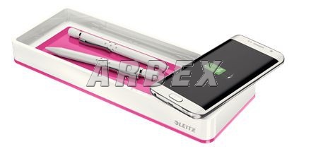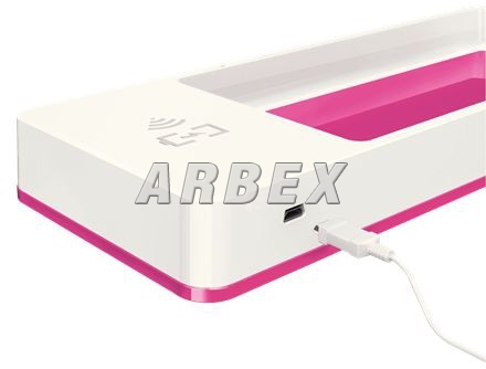 Popis Stolní organizér s indukčním nabíjením Leitz WOW, Metalická růžová