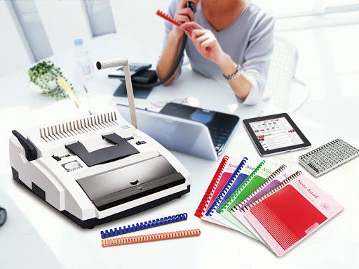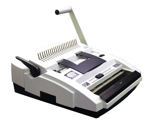 Elektrický kombinovaný stroj na vázání plastovými i drátěnými hřbety (3:1) s oddělenými pákami na uzavírání drátěných hřbetů a roztažení kroužku, s nastavitelnými formáty A4, letter, obálka a 12.Je vybaven praktickým mechanismem pro snadné vkládání listů do drátěného hřbetu.
