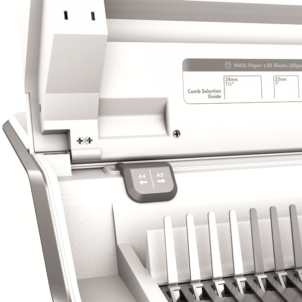 Kapacita vazby až 300 listů, max velikost hřbetu 38 mm.