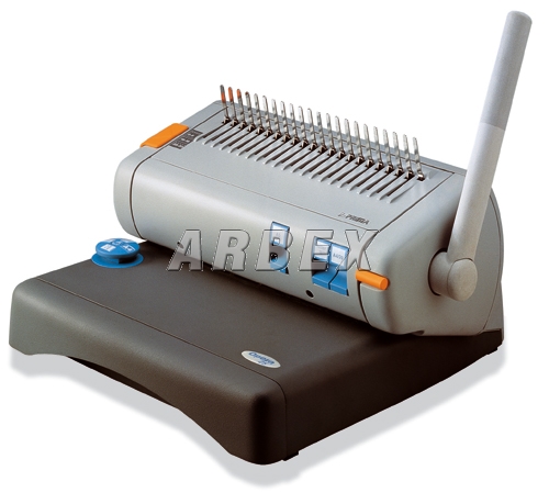 Manuální výkonný stroj pro kroužkovou vazbu s nastavitelnými formáty A4, A5, letter 11, letter 8,5, A4/20 a vyřaditelnými řezacími zuby dle těchto formátů. Regulace odstupu děr od okraje papíru, měřítko průměru kroužků. Vhodný pro profesionální zatížení. Rozměry: 27 x 46 x 44 cm