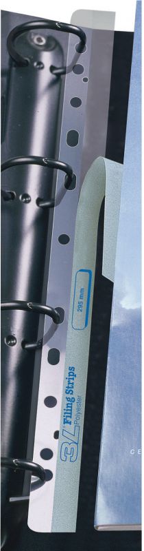 Umožňují zakládání materiálu do pořadače bez děrování. Pro formát A4. Balení 100 ks. Rozměr 295 mm.