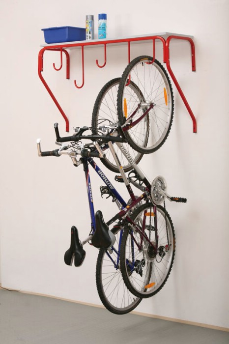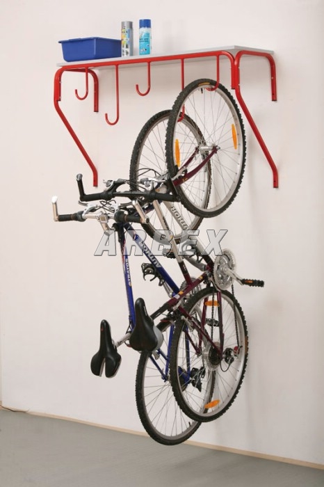 Věšák na 5 kol použitelný pro všechny typy kol a šířky plášťů. Je vhodný především tam, kde je nedostatek prostoru pro uložení kola. Vyroben z kulatiny o průměru 12 mm. Povchová úprava práškovým lakem RAL 3000. Dodává se demontovaný. Z důvodu možnosti kotvení do zdi různých materiálů, kotevní materiál jako jsou kotvy, hmoždinky a šrouby nejsou přiloženy. Velmi oblíbený věšák šetřící místo v místnostech. Dodává se bez police.