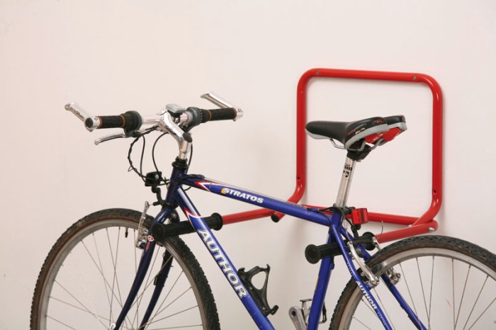 Věšák na kola je vyroben z tuhých ocelových profilů, povrchová ochrana je provedena práškovou barvou v odstínu červeném, je připraven ke kotvení na zeď. Z důvodu možnosti kotvení do zdi různých materiálů, kotevní materiál jako jsou kotvy, hmoždinky a šrouby nejsou přiloženy. Při nepoužívání lze věšák sklopit na zeď k úspoře místa. Složený věšák je pouze 122 mm široký.