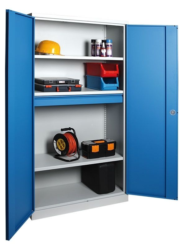 Dílenská svařovaná skříň se zásuvkou, ideální pro použití ve všech průmyslových provozech.