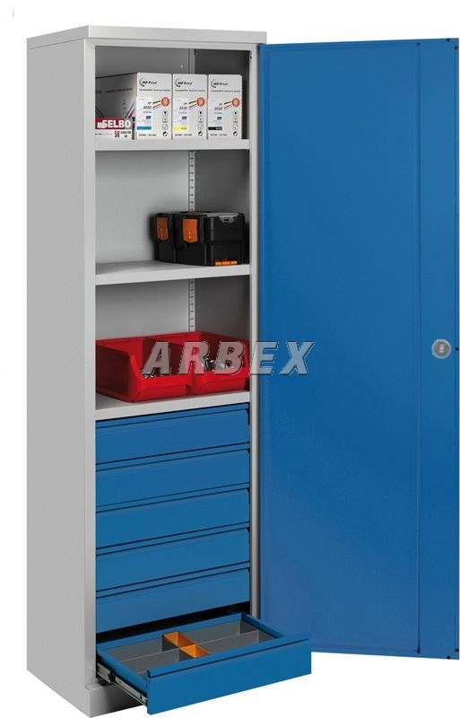 Dílenská robustní svařovaná skříň se zásuvkami, ideální pro použití ve všech průmyslových provozech.