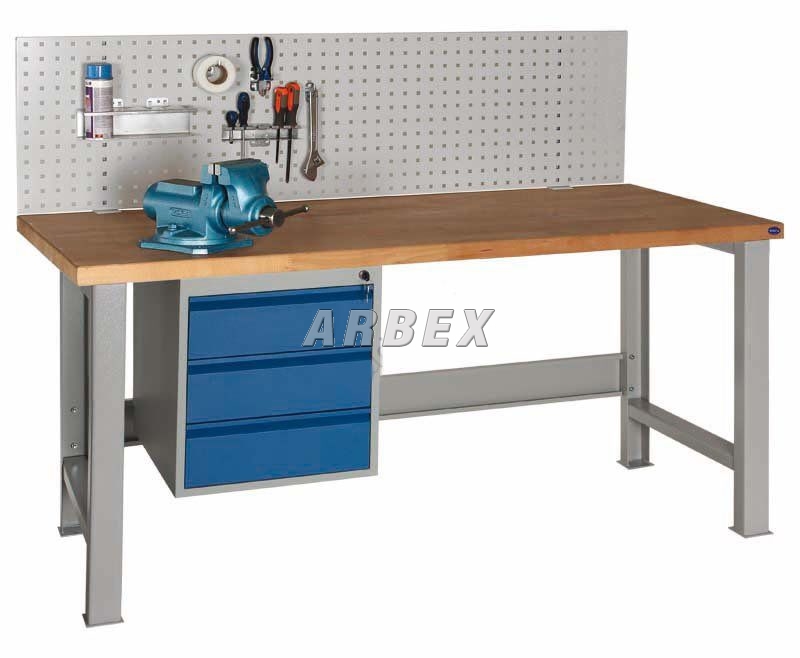 dílenský stůl vybavený kontejnerem se 3 zásuvkami