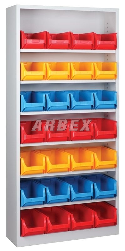 kovový regál s plnými boky i zadní stěnou svařovaný z ocelového plechu tl. 0,7-0,9 mm