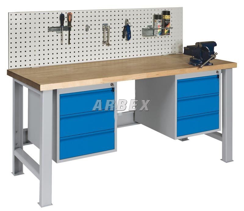 dílenský stůl vybavený 2 kontejnery se 3 zásuvkami