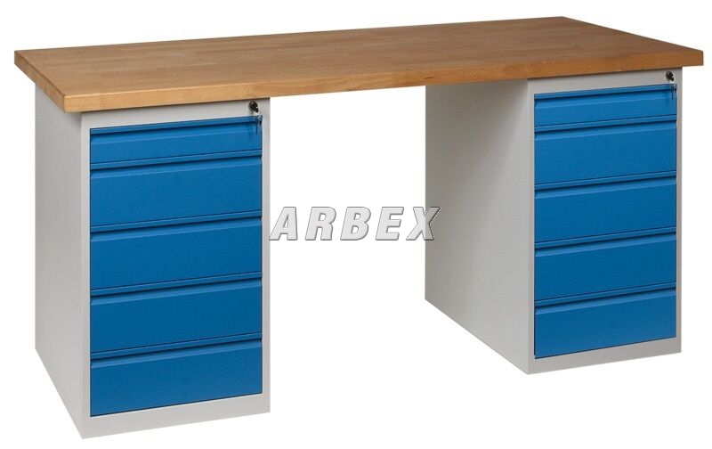 Profesionální dílenský stůl s 5-zásuvkovými kontejnery