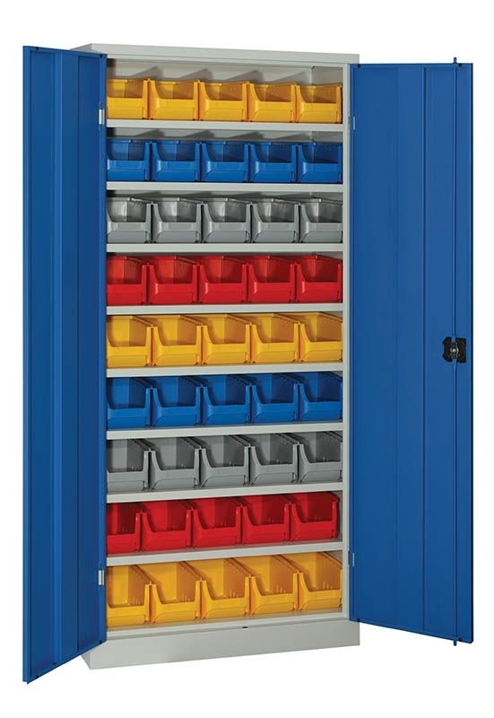 výbava skříně - 45 ks plastových boxů, vnější rozměry boxů v x š x h=125 x 150 x 235 mm