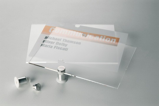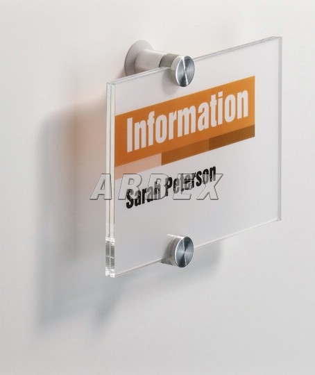 Nástěnná a dveřní tabulka z kvalitního průzračného akrylu. Fólie se vkládá mezi dvě akrylové desky a snadno se upevní na zeď pomocí dvou šroubových spojů. Snadná montáž. Jednoduchá výměna textu. Sada obsahuje kompletní infotabuli včetně dvou folií, které lze potisknout v laserové tiskárně.