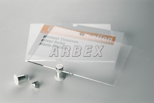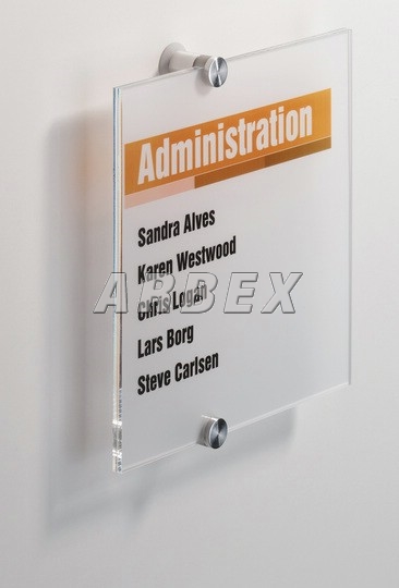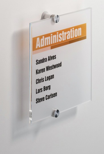 Nástěnná a dveřní tabulka z kvalitního průzračného akrylu. Fólie se vkládá mezi dvě akrylové desky a snadno se upevní na zeď pomocí dvou šroubových spojů. Snadná montáž. Jednoduchá výměna textu. Sada obsahuje kompletní infotabuli včetně dvou folií, které lze potisknout v laserové tiskárně.