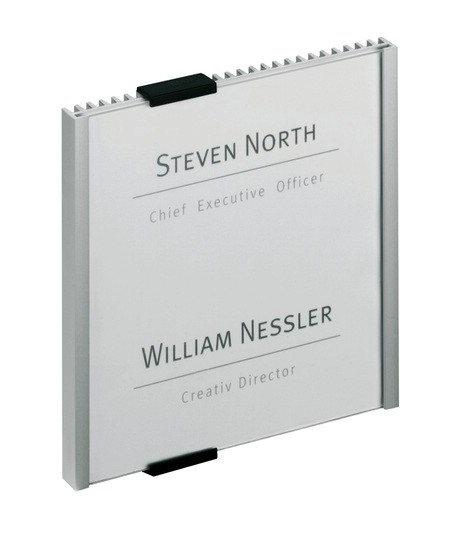 Nástěnná a dveřní informační tabulka v jednoduchém účelném designu z hliníku a průzračného akrylu. Barva: černostříbrná Rozměry: 149 x 148,5 mm. Montážní sada je součástí výrobku.