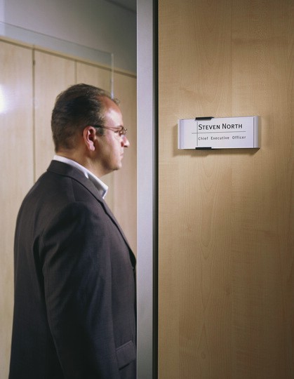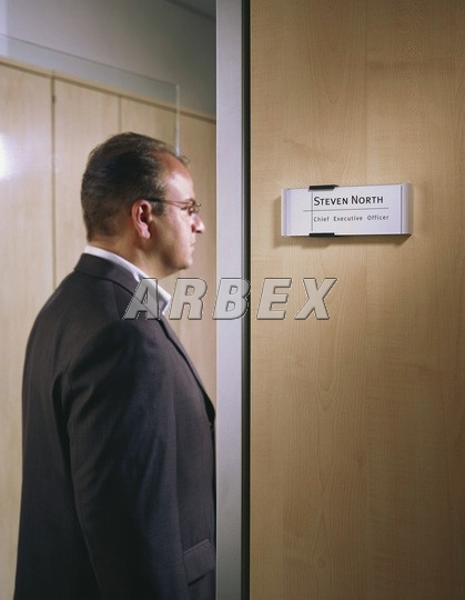 Nástěnná informační tabulka v jednoduchém účelném designu z hliníku a průzračného akrylu. Barva: černostříbrná Rozměry: 149 x 52,5 mm. Montážní sada je součástí výrobku.