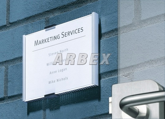 Nástěnná a dveřní informační tabulka v jednoduchém účelném designu z hliníku a průzračného akrylu. Barva: černostříbrná Rozměry: 210 x 148,5 mm. Montážní sada je součástí výrobku.