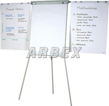 Magnetický flipchart s lakovaným kovovým povrchem, se zaklapávací upínací lištou, popisovatelný za sucha stíratelnými popisovači.