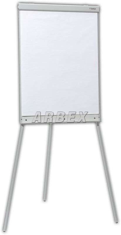 Flipchart s třínohým stativem. Plynule stavitelná výška. Dřevovláknitá bíle lakovaná popisovatelná tabule, stabilní kovový rám. Omyvatelný alkoholovým čističem. Papírový blok upevněný na kovových čepech a přichycený svěrnou lištou, odkládací přihrádka. Popisovaná plocha 67 x 90 cm. Celková výška 200 cm. Hmotnost 6,8 kg.