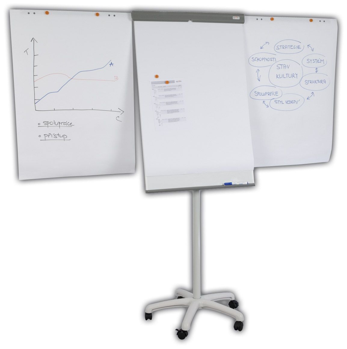 Kombinovaný flipchart s magnetickou popisovatelnou plochou, stíratelnou za sucha.