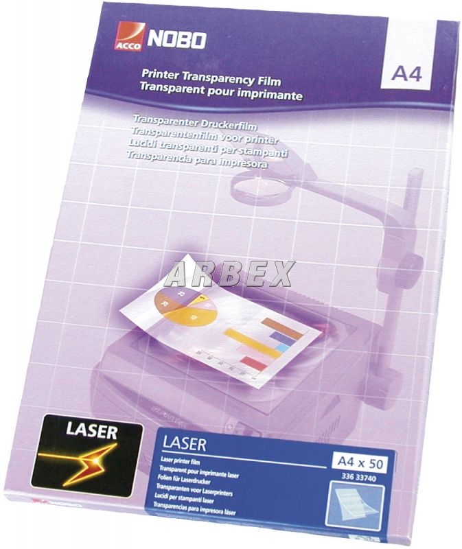 Transparentní fólie určena pro černý tisk. Speciální povlak pro optimální přilnutí toneru. Zadní list přilepený ke kratší straně. 50 ks v balení. 33740.