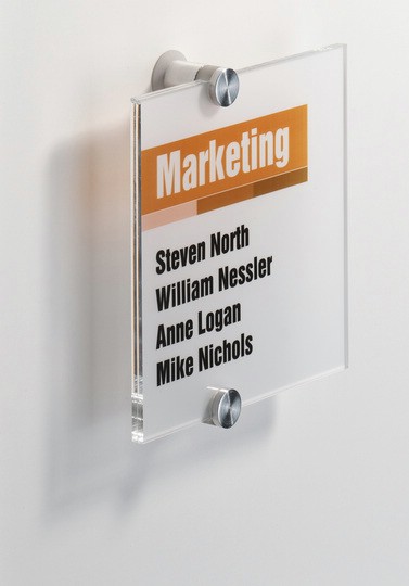 Nástěnná tabulka z kvalitního průzračného akrylu. Fólie se vkládá mezi dvě akrylové desky a snadno se upevní na zeď pomocí dvou šroubových spojů. Snadná montáž. Jednoduchá výměna textu. Sada obsahuje kompletní infotabuli včetně dvou folií, které lze potisknout v laserové tiskárně.