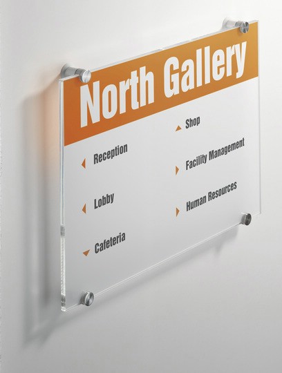 Nástěnná tabulka z kvalitního průzračného akrylu. Fólie se vkládá mezi dvě akrylové desky a snadno se upevní na zeď pomocí dvou šroubových spojů. Snadná montáž. Jednoduchá výměna textu. Sada obsahuje kompletní infotabuli včetně dvou folií, které lze potisknout v laserové tiskárně.