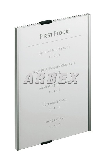 Nástěnná informační tabulka v jednoduchém účelném designu z hliníku a průzračného akrylu. Barva: černostříbrná Rozměry: 210 x 297mm. Montážní sada je součástí výrobku.