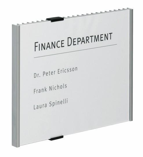 Nástěnná informační tabulka v jednoduchém účelném designu z hliníku a průzračného akrylu. Barva: černostříbrná Rozměry: 210 x 297mm. Montážní sada je součástí výrobku.