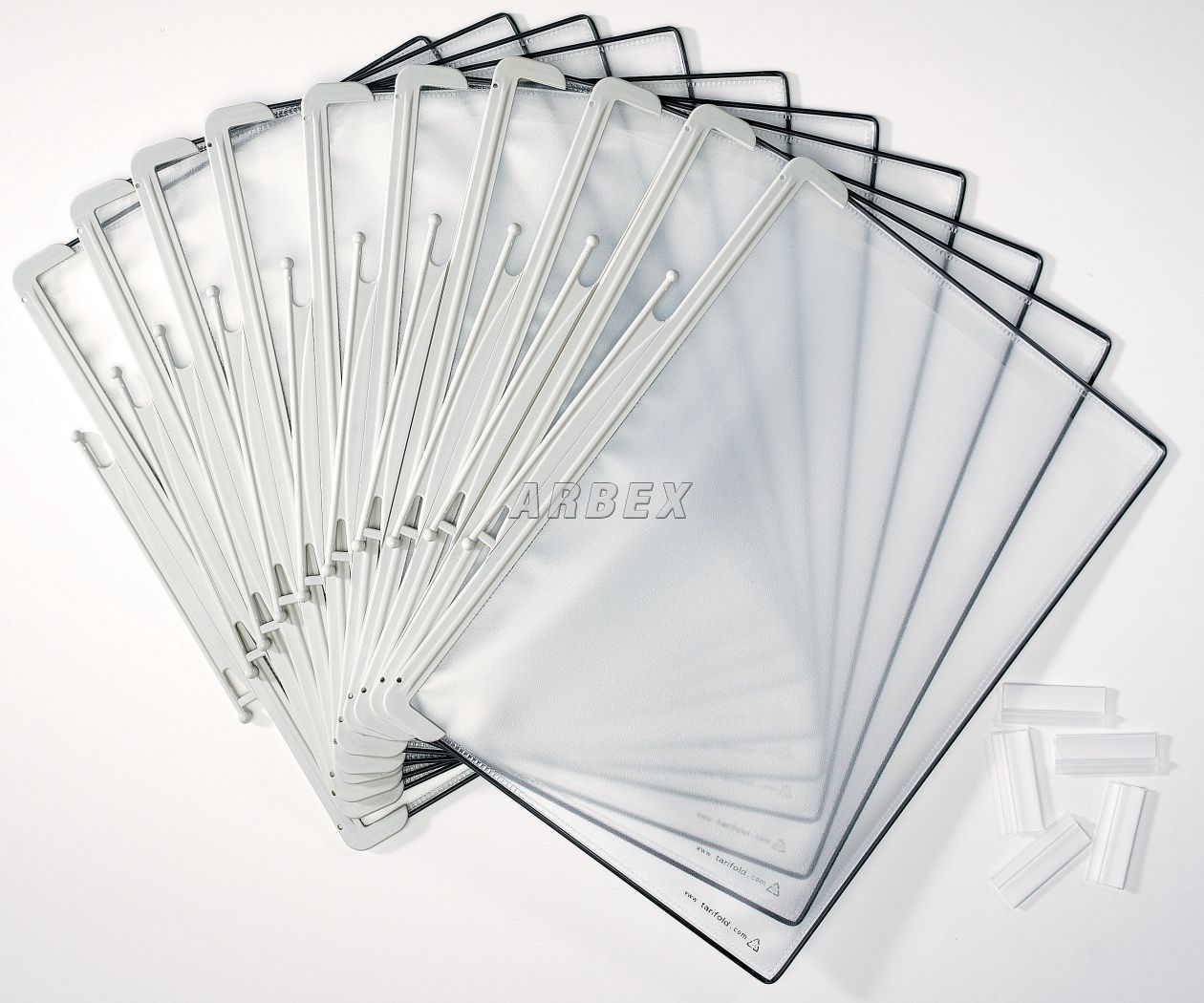 Kapsy Design A4 s plastovými úchyty, otevřené shora. Jsou vyrobeny z ekologicky šetrného polypropylenu. Rámeček je zpevněn kovovým drátem, který zajisťuje stálý tvar a pružnost lemu. Jsou určeny pro držáky a stojanyTarifold Design a stojanu Orbital. Barva rámečku je šedá. Balení: 5 kapes A4.