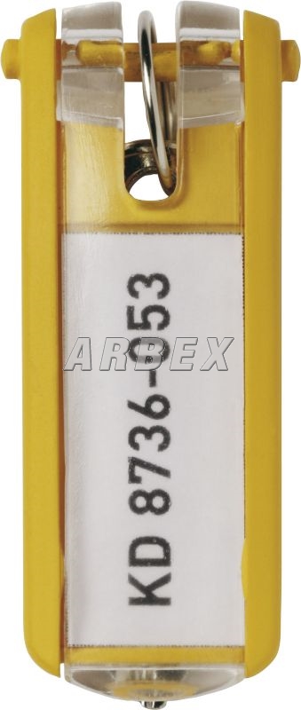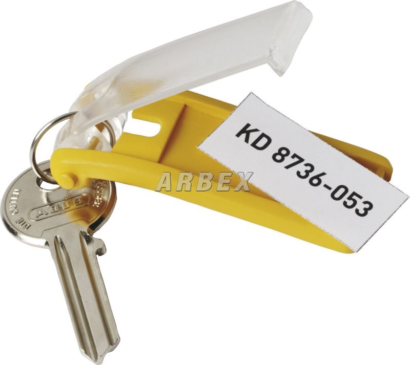 Tento jedinečný plastový přívěsek na klíče umožňuje dokonalý přehled o klíčích ve skříňce díky tomu, že klíče jsou na plocho uloženy za ním a popisovací štítky jsou tak kdykoliv čitelné. Pro vložení popisovacího štítku lze klip snadno bez sejmutí závěsného kroužku. 6 ks v balení. Barvy: červená, černá, modrá, žlutá.