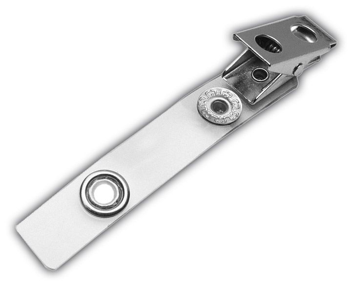 Kovový klips pro uchycení visačky s předděrovaným oválným otvorem. Čirá plastová šle otočná o 360°. 100 ks v balení.