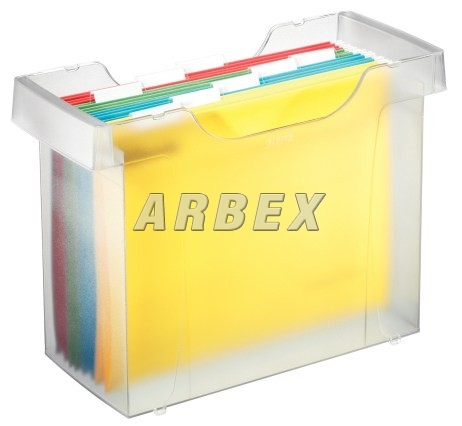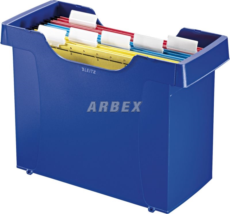 Zásobník na závěsné desky v designu nové řady Leitz PLUS. Vyrobený z pevného plastu. Postranní skryté výřezy pro lehký přenos. Možnost uložení všech typů závěsných desek A4.Přední výřez pro snadnou čitelnost štítků. Možnost stohování na sebe. Dodáva se s 5mi závěsnými deskami.Rozměry 395 x 273 x 170 mm