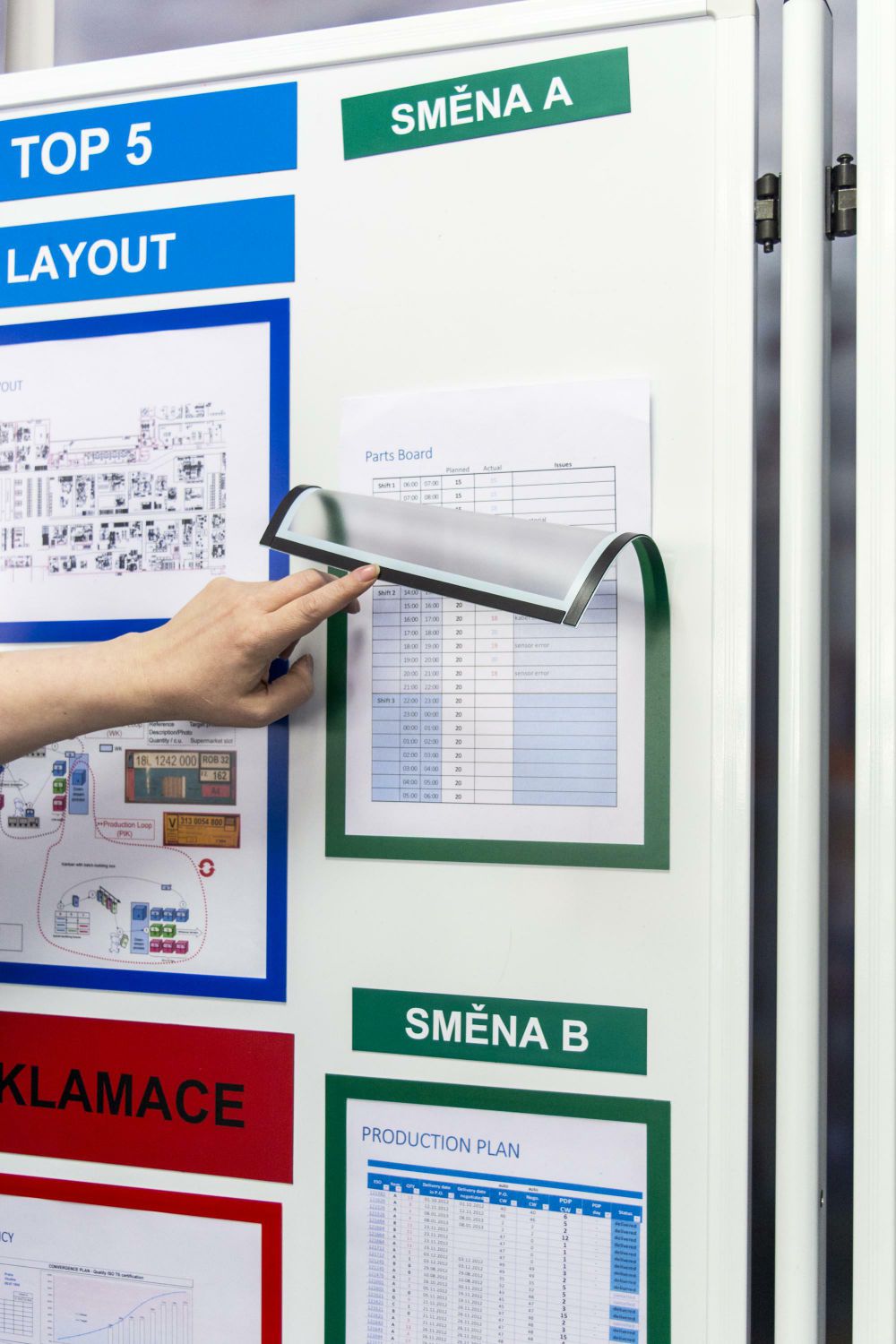 Poutavý magnetický rámeček k prezentaci důležitých informací na kovových plochách. Jednoduché ostré linie ve výrazných barvách. Tvoří jej transparentní strana s barevným rámečkem a magnetickými lemy na zadní straně. Bez zadního dílu - podkladem je kovová plocha, na kterou je rámeček umístěn. Snadné a rychlé vkládání dokumentů a zároveň jejich bezpečná fixace ze všech stran. Vhodné použití v obchodech, hotelech, restauracích, průmyslu, školách.