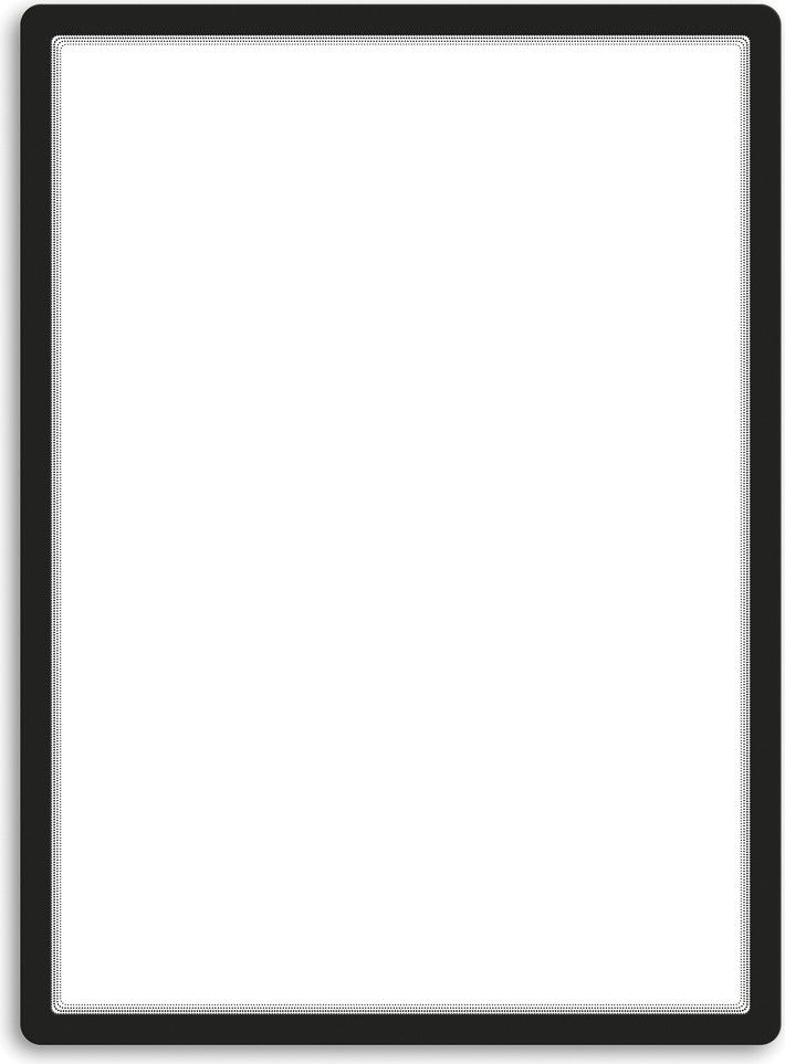 Designový rámeček se zaoblenými rohy. Snadné a rychlé vkládání dokumentů díky širokému otevření rámečku ze tří stran. Prezentace dokumentů na všech hladkých plochách. Fixace dokumentu magnetickými lemy ze všech stran. Přemístění bez zanechání stop lepidla. Vhodné použití v obchodech, hotelech, restauracích, průmyslu, školách. Ideálně na prosklené plochy, kde je čitelnost z obou stran.