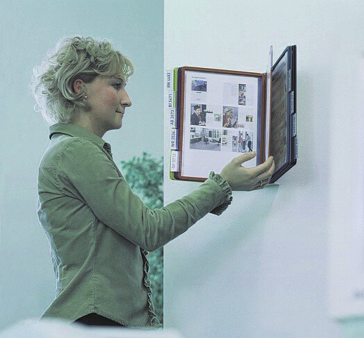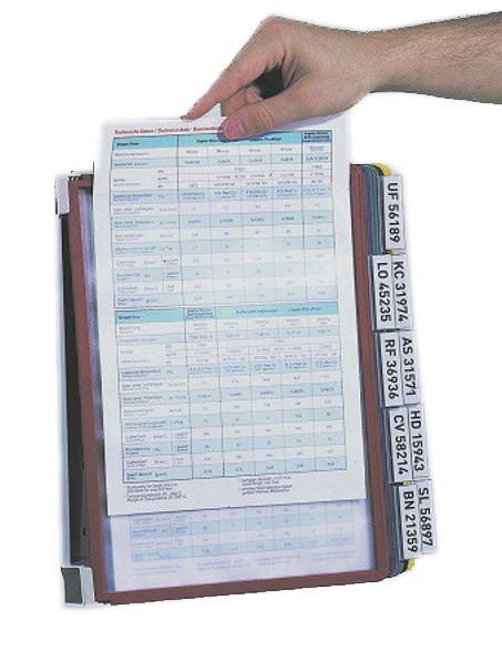 Kovový nástěnný držák včetně 10 barevných tabulí z polypropylenu. Držák se obzvláště hodí do dílen, skladů i na prodejní či výstavní místa. Jednoduchá montáž na stěnu. Zabudovaná čepová mechanika umožňuje snadné a bleskurychlé vyjmutí a vložení tabulí.