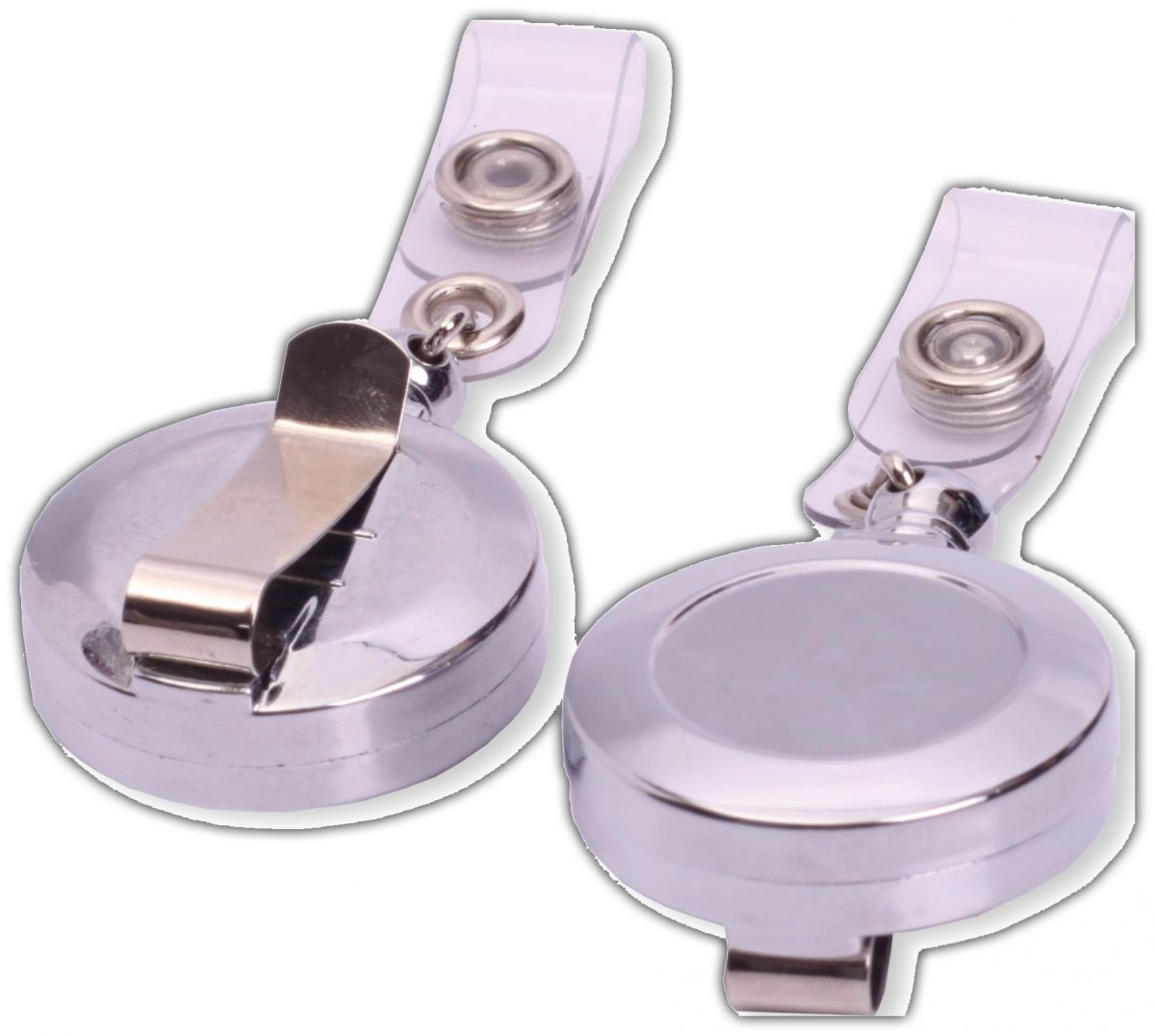 Plastový naviják s chromovaným povrchem, průměr 32 mm, délka lanka cca 65 cm. Cena za 1ks.
