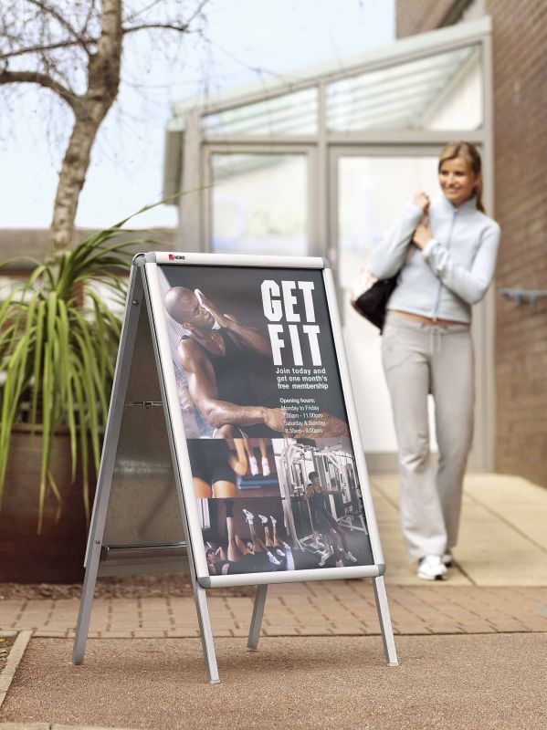 Oboustranný display použitelný ve vnitřním i venkovním prostředí. Rám z vysoce kvalitního anodizovaného (galvanicky tvrzeného) hliníku. Ochranné plastové rohy. Výklopné lišty rámu s originálním clip systémem zaručují rychlou a jednoduchou výměnu dokumentů. Antireflexní fólie z PVC zamezuje poškození dokumentů prachem a špínou. Gumové těsnění chrání dokumenty před vlhkostí. Pevný kovový rám nosné konstrukce se čtyřmi nohami zaručuje stabilitu. Kovová zadní stěna. Šířka rámu: 32 mm.